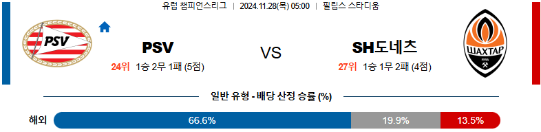[킹콩티비]11월 28일 PSV vs 샤흐타르 UEFA CL 해외축구분석 무료중계 스포츠분석