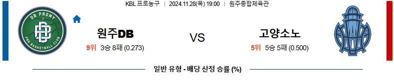 [킹콩티비]11월 28일 원주DB vs 고양 소노 스카이거너스 KBL 해외축구분석 무료중계 스포츠분석