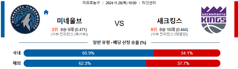 미네소타 울브스 새크라멘토 킹스 농구분석