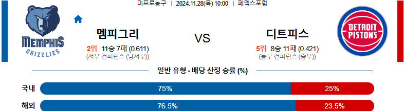 [킹콩티비]11월 28일 멤피스 그리즐리스 vs 디트로이트 피스톤스 NBA 해외축구분석 무료중계 스포츠분석
