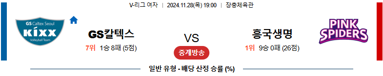 [킹콩티비]11월 28일 GS칼텍스 vs 흥국생명 V-리그 (여) 해외축구분석 무료중계 스포츠분석