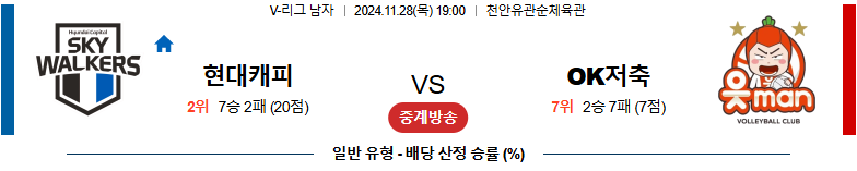 [킹콩티비]11월 28일 현대캐피탈 vs OK저축은행 V-리그 해외축구분석 무료중계 스포츠분석