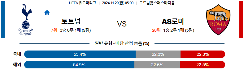 [킹콩티비]11월 29일 토트넘 vs 로마 UEFA 유로파리그 해외축구분석 무료중계 스포츠분석