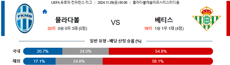 [킹콩티비]11월 29일 볼레슬라프 vs 베티스 UEFA 유로파리그 해외축구분석 무료중계 스포츠분석