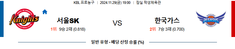 서울SK 대구한국가스공사 11월29일