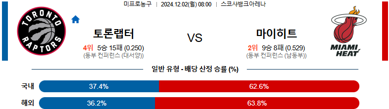 [킹콩티비]12월 02일 토론토 랩터스 vs 마이애미 히트 NBA 해외축구분석 무료중계 스포츠분석