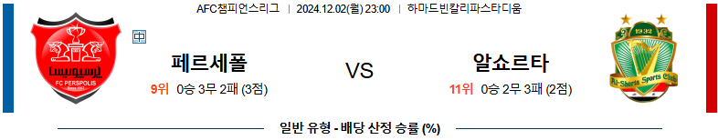 페르세폴리스 알 쇼르타 축구분석