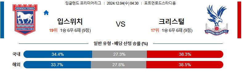 입스위치 크리스탈 팰리스 축구분석