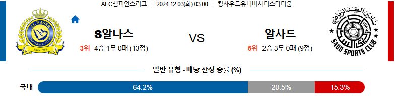 [킹콩티비]12월 03일 알 나스르 vs 알 사드 AFC 챔피언스리그 해외축구분석 무료중계 스포츠분석