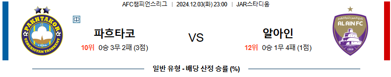 [킹콩티비]12월 03일 파흐타코르 vs 알 아인 AFC 챔피언스리그 해외축구분석 무료중계 스포츠분석