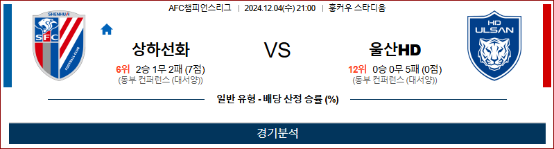 [킹콩티비]12월 04일 상하이 선화 vs 울산 AFC 챔피언스리그 해외축구분석 무료중계 스포츠분석