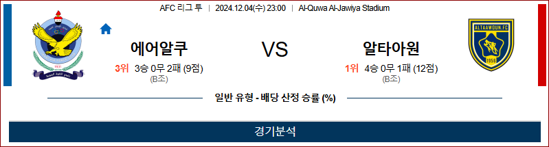 [킹콩티비]12월 04일 알쿠와 vs 알 타아원 AFC 챔피언스리그2 해외축구분석 무료중계 스포츠분석