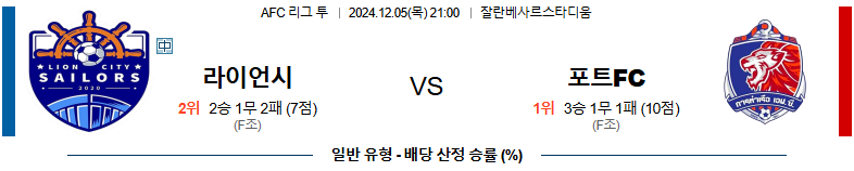 라이언 시티 세일러스 FC 포트 FC 축구분석