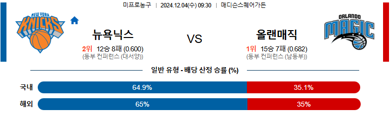 [킹콩티비]12월 04일 뉴욕닉스 vs 올랜도 매직 NBA 해외축구분석 무료중계 스포츠분석