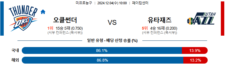 [킹콩티비]12월 04일 오클라호마 시티 썬더 vs 유타 NBA 해외축구분석 무료중계 스포츠분석