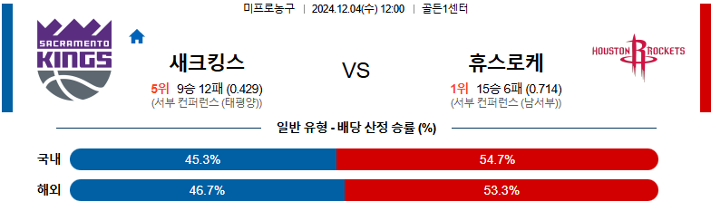 [킹콩티비]12월 04일 새크라멘토 킹스 vs 휴스턴 로켓츠 NBA 해외축구분석 무료중계 스포츠분석
