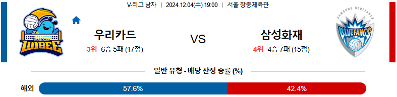 [킹콩티비]12월 04일 우리카드 vs 삼성화재 V-리그 해외축구분석 무료중계 스포츠분석