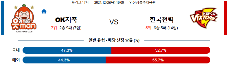 [킹콩티비]12월 05일 OK저축은행 vs 한국전력 V-리그 국내배구분석 생중계 무료중계 스포츠분석