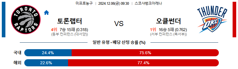 토론토 랩터스 오클라호마시티 썬더 12월06일