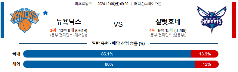 뉴욕 닉스 샬럿 호네츠 12월06일