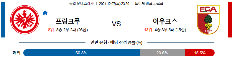 [킹콩티비]12월 07일 프랑크푸르트 vs 아우크스부르크 분데스리가 해외축구분석 생중계 무료중계 스포츠분석