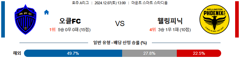 오클랜드 FC 웰링턴 피닉스 FC 축구분석