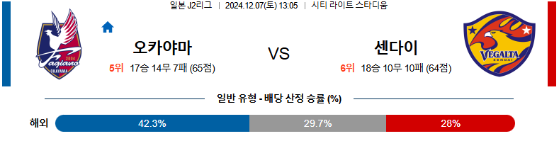 [킹콩티비]12월 07일 오카야마 vs 센다이 J리그 2 아시아축구분석 생중계 무료중계 스포츠분석