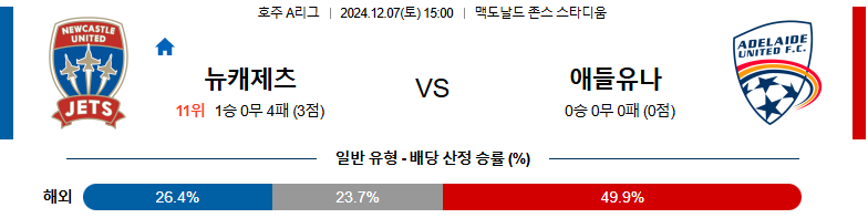 뉴캐슬 제츠 FC 애들레이드 유나이티드 FC 축구분석