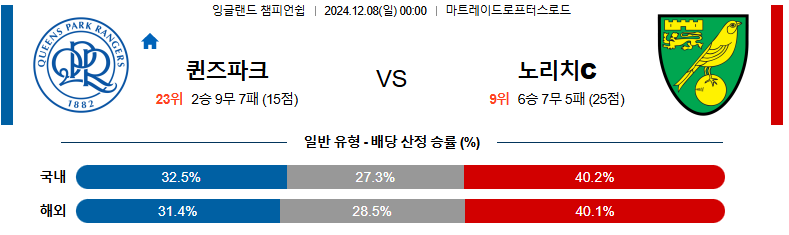 [킹콩티비]12월 08일 QPR vs 노리치 시티 잉글랜드 챔피언쉽 해외축구분석 생중계 무료중계 스포츠분석