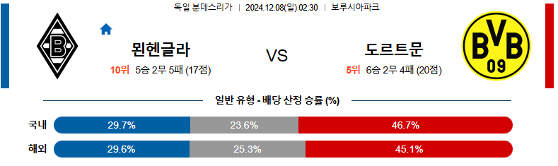 [킹콩티비]12월 08일 묀헨글라트바흐 vs 도르트문트 분데스리가 해외축구분석 생중계 무료중계 스포츠분석