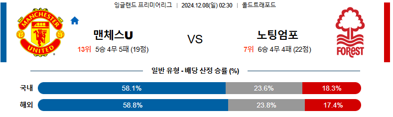 [킹콩티비]12월 08일 맨체스터 유나이티드 vs 노팅엄 EPL 해외축구분석 생중계 무료중계 스포츠분석