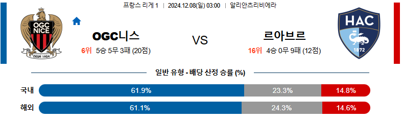 [킹콩티비]12월 08일 니스 vs 르 아브르 리그앙 해외축구분석 생중계 무료중계 스포츠분석