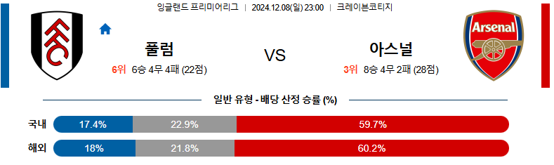 [킹콩티비]12월 08일 풀럼 vs 아스날 EPL 해외축구분석 생중계 무료중계 스포츠분석