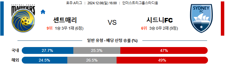 [킹콩티비]12월 08일 센트럴 코스트 vs 시드니 J리그 1 아시아축구분석 생중계 무료중계 스포츠분석