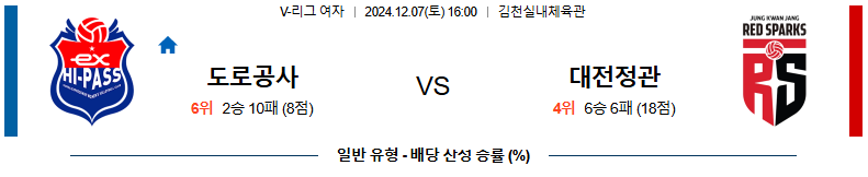 [킹콩티비]12월 07일 도로공사 vs 정관장 V-리그 (여) 국내배구분석 생중계 무료중계 스포츠분석