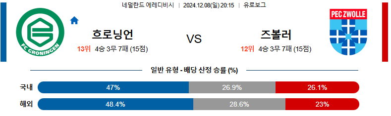 [킹콩티비]12월 08일 흐로닝언 vs 즈볼레 에레디비지에 해외축구분석 생중계 무료중계 스포츠분석