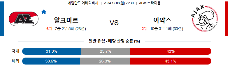 [킹콩티비]12월 08일 알크마르 vs 아약스 에레디비지에 해외축구분석 생중계 무료중계 스포츠분석