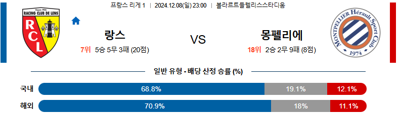 [킹콩티비]12월 08일 랑스 vs 몽펠리에 리그앙 해외축구분석 생중계 무료중계 스포츠분석