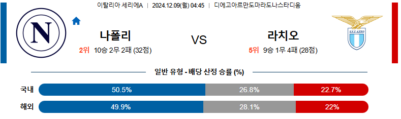 [킹콩티비]12월 09일 나폴리 vs 라치오 세리에 A 해외축구분석 생중계 무료중계 스포츠분석