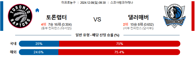 토론토 랩터스 댈러스 매버릭스 12월08일