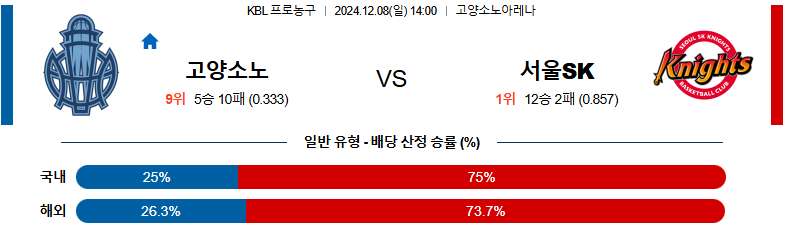 [킹콩티비]12월 08일 고양소노 vs 서울SK KBL 국내외농구분석 생중계 무료중계 스포츠분석