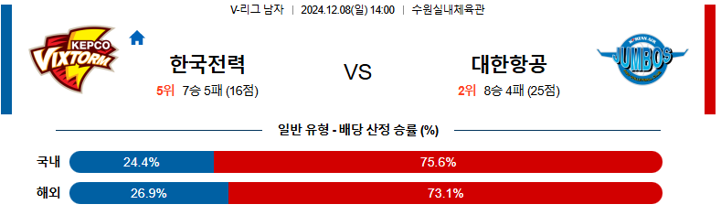 [킹콩티비]12월 08일 한국전력 vs 대한항공 V-리그 국내배구분석 생중계 무료중계 스포츠분석