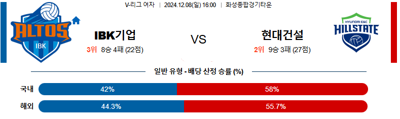 # 홈팀 : IBK기업은행(8승4패)