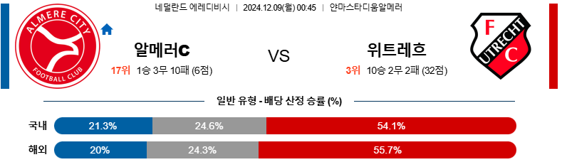 [킹콩티비]12월 09일 알메러 시티 vs 위트레흐트 에레디비지에 해외축구분석 생중계 무료중계 스포츠분석