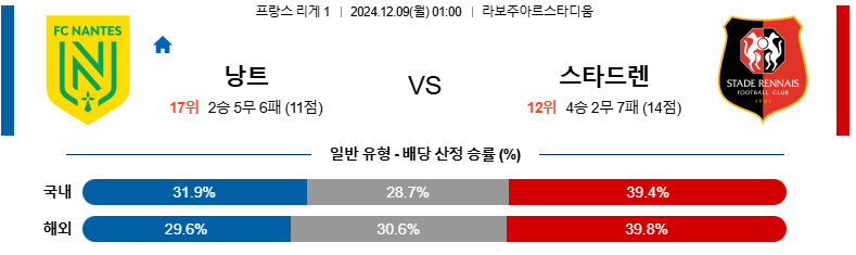# 낭트 (프랑스 1부 17위 / 최근 5전: 패패패패무)