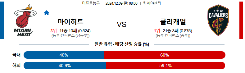 [킹콩티비]12월 09일 마이애미 히트 vs 클리블랜드 캐벌리어스 NBA 미국프로농구분석 생중계 무료중계 스포츠분석