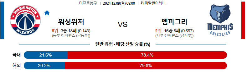 워싱턴 위자드 멤피스 그리즐리즈 농구분석