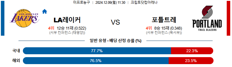 [킹콩티비]12월 09일 LA레이커스 vs 포틀랜드 트레일블레이저스 NBA 미국프로농구분석 생중계 무료중계 스포츠분석