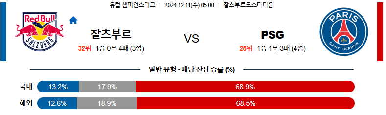 레드불 잘츠부르크 파리 생제르맹 12월11일