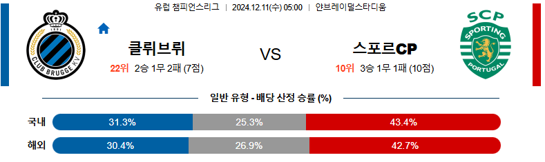 [킹콩티비]12월 11일 클럽 브뤼헤 vs 스포르팅 UEFA 챔피언스리그 해외축구분석 생중계 무료중계 스포츠분석
